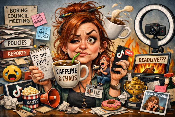 Liz presents as a highly creative, chronically distracted, mildly feral digital content creator trapped in the body of a council employee who has mentally clocked out sometime around 2007.